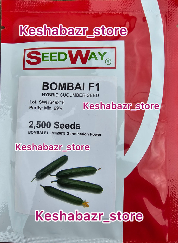 بذر خیار بومبای یکی از بهترین ارقام هیبرید و بسیار زودرس تولید شرکت سیدوی آمریکا میباشد. این بذر خیار مناسب کشت فضای باز بوده و در بین کشاورزان از محبوبیت بسیار بالایی برخوردار است. از ویژگیهای این رقم میتوان به ماده بودن تمام گلها (پارتنوکارپ)، عملکرد بسیار بالا با حفظ کامل کیفیت میوه در در طول دوره رشد، تیپ میوه سیلندری با بافت ترد و متراکم و خوش عطر و طعم بودن آنها اشاره کرد.